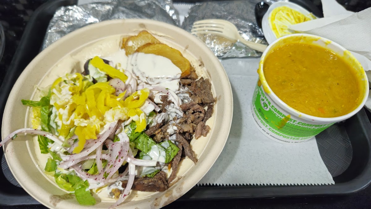 Holy cow the amount of food I got was massive - I did a gyro bowl and the food was so good. Texture of the hummus was so smooth, the ingredients were fresh and not soggy, and the pita bread was warm, soft, and delicious. Price is worth the amount of food you get!